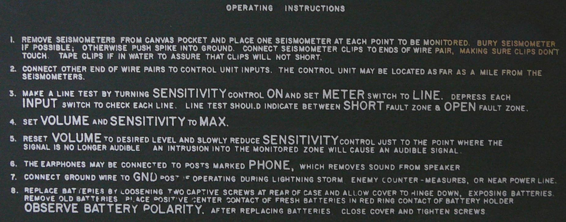 The AN/PSR-1A is a battery-powered seismic detector from the Vietnam era.