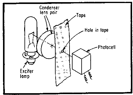 The basic technique for reading punched tape photoelectrically.
