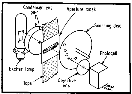 scanning disc to give a serial output from the tape. The scanning