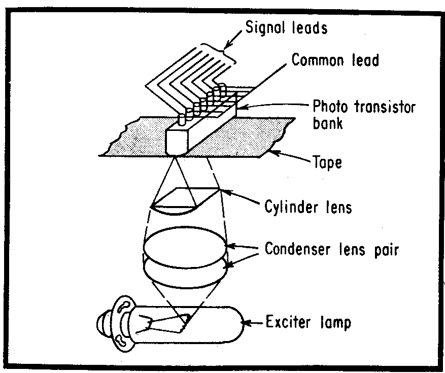 stepped or continuously moving tape. Uses one photoelectric